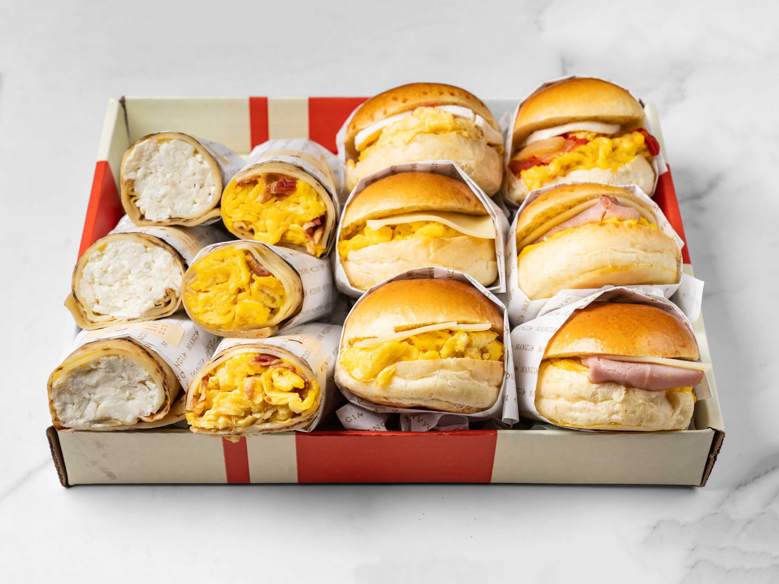 Our breakfast sandwiches are a delicious way to start your day. Served on a Tuscan flat bread or brioche roll, these sandwiches are packed with flavor. You can choose from a variety of fillings including scrambled eggs, your choice of cheese, ham, bacon, sausage, or peppers & onions. We also offer a gluten-free option for those with dietary restrictions. Whether you prefer a classic combination or want to mix and match your ingredients, our breakfast sandwiches are sure to satisfy your cravings. Come to Mangia NYC and indulge in these mouthwatering breakfast treats.